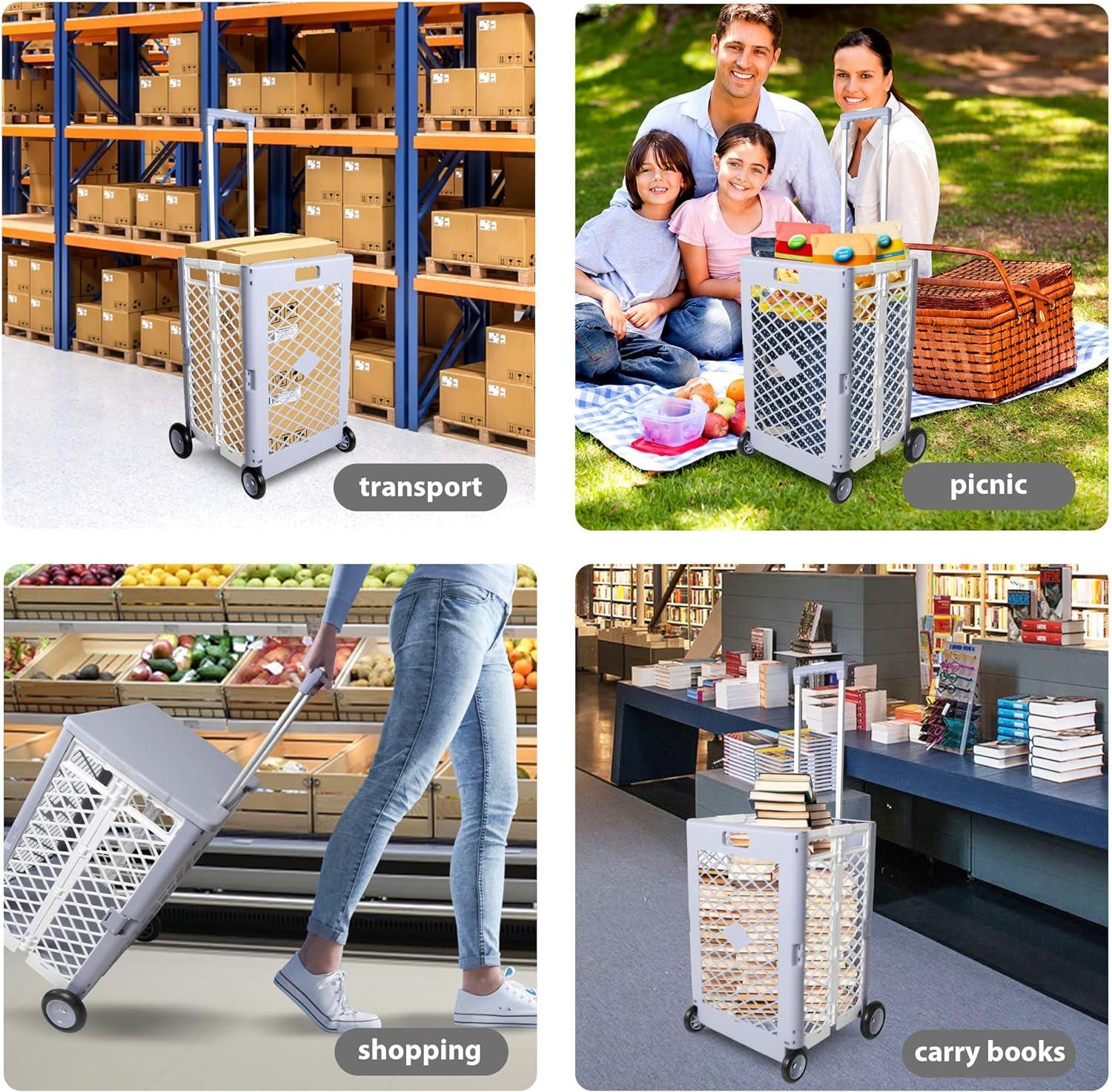 Multi-functional Use: The Shopping Cart Is Suitable For Indoor And Outdoor Use, It Is An Ideal Pull Cart For Moving Groceries, Office Supplies, Books, And Tools. Also Great For Home, Shopping, Travel, Picnics, Holidays, And Family Projects.