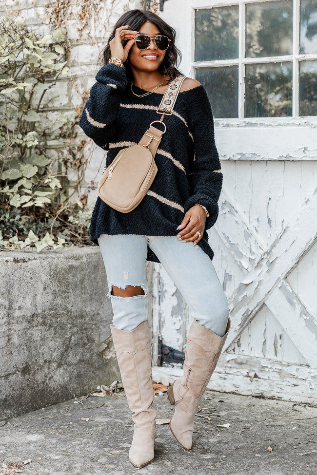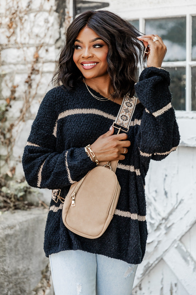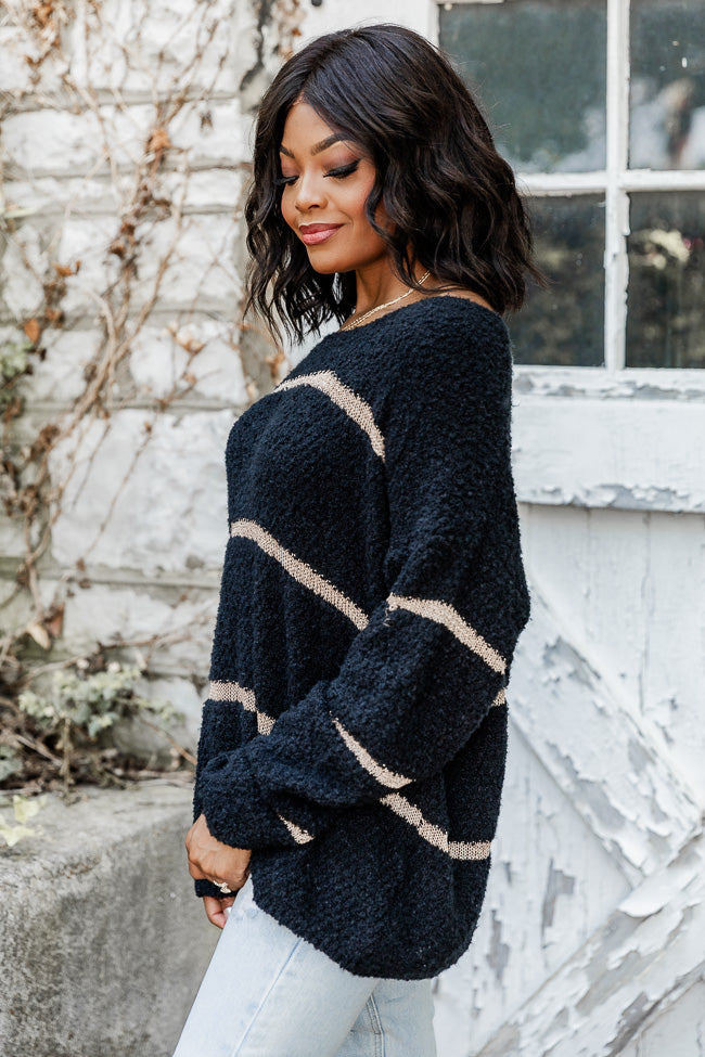 - Black And Gold Fuzzy Metallic Stripe Sweater