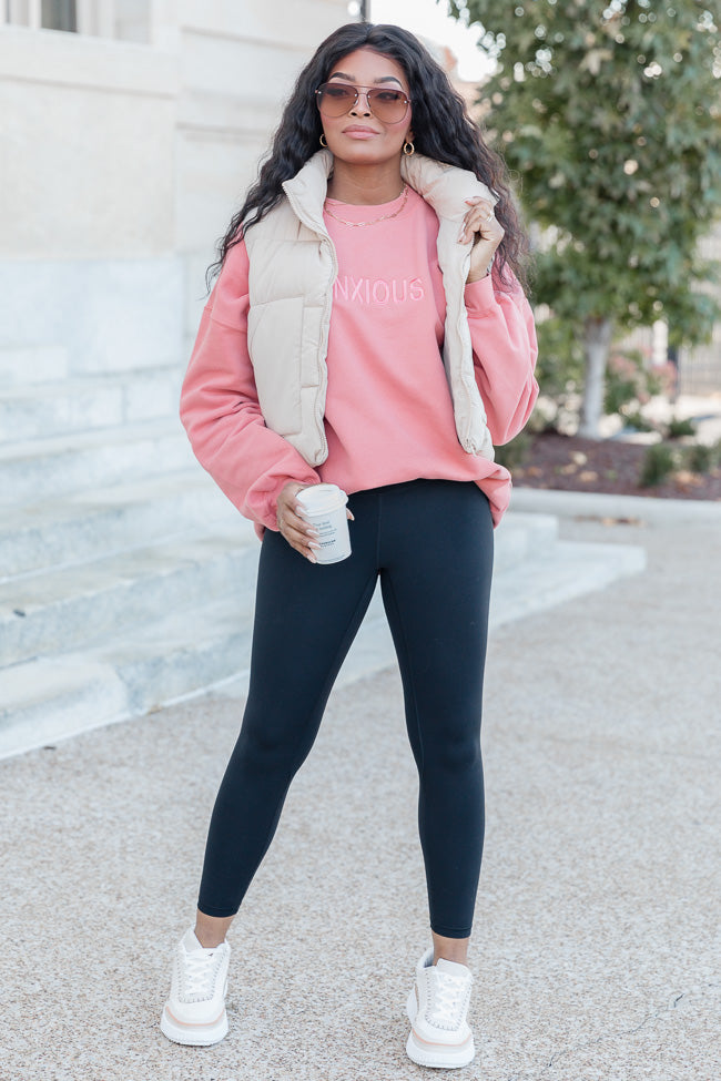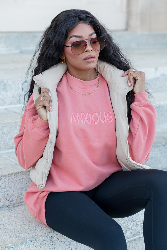 - Anxious Embroidered Brick Oversized Sweatshirt
