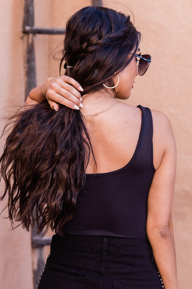 - Black Ribbed Square Neck Tank BodysuitÂ