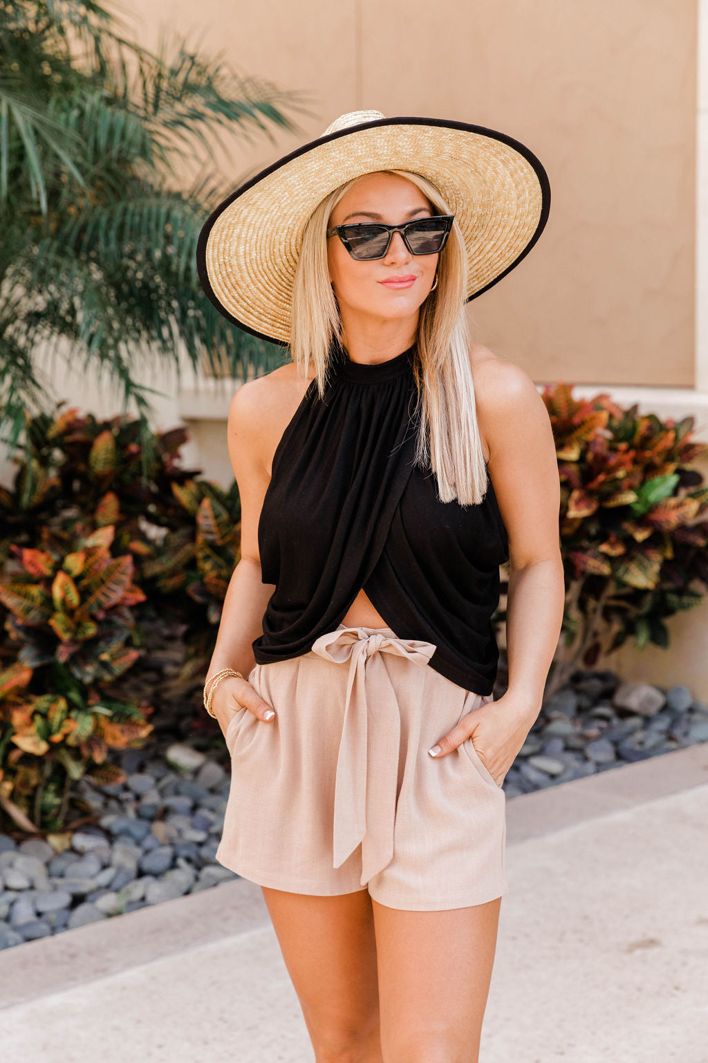 These Sweet Tan Shorts Are Such An Amazing Choice For Any Summer Afternoon! We Love The Trendy Paperbag High Waist Fit – You Can Easily Style It With Any Tops Or Bodysuits! The Tie Front And Button Detail Make For A Cute Combination. Throw These On With A Fabulous Top And Sandals For The Perfect Casual Look!