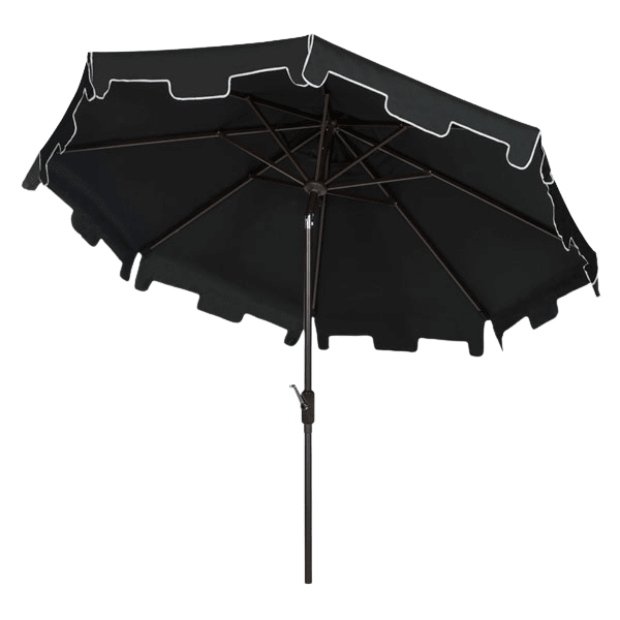 A Classic Market Umbrella Gets A Chic Makeover With Fashion-forward Black And White Fabric And A Valance For Extra Sun Protection And European Flair. Its Nine-foot Polyester Canopy And Sturdy Brown Aluminum Frame Make It The Ideal Umbrella For Veranda Or Pool Deck. Includes Easy Crank And Tilt Mechanism. When Open, The Umbrella Measures 100.79″W X 100.79″D X 98.82″H, And When Closed 6.1″W X 6.1″D X 98.82″H. Pole Diameter Measures 1.5″. Please Note Some Assembly Is Required For This Item. Click Images For Greater Details.