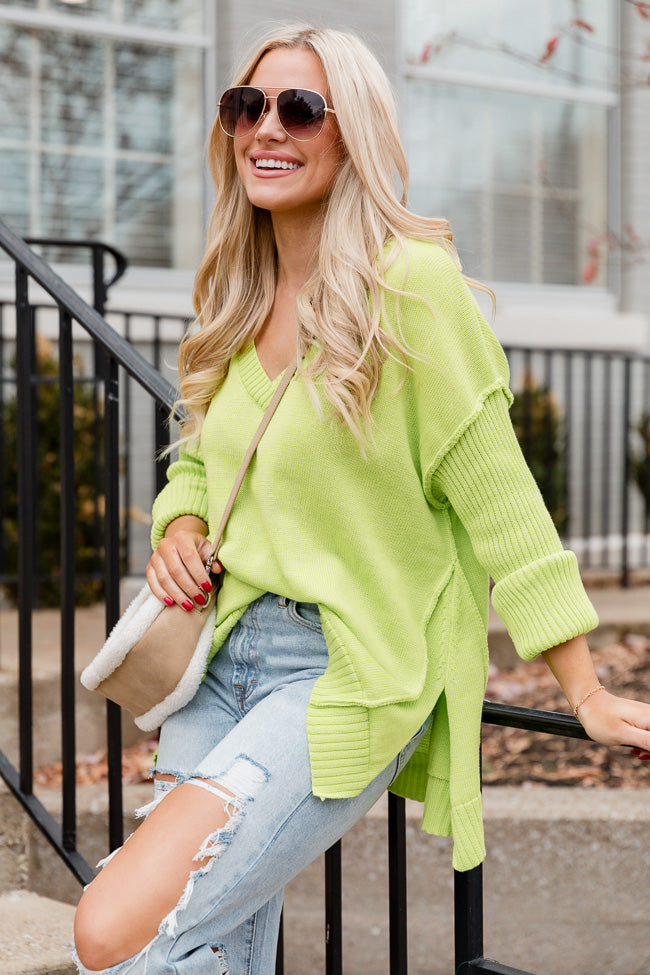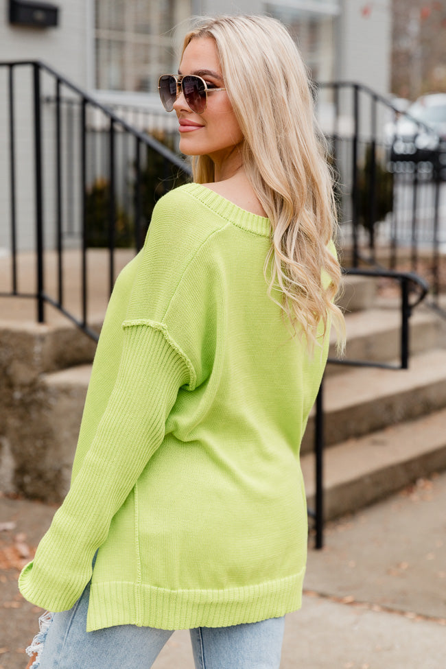 - Crewneck, Ribbed Long Sleeves And Hem, Side Slits