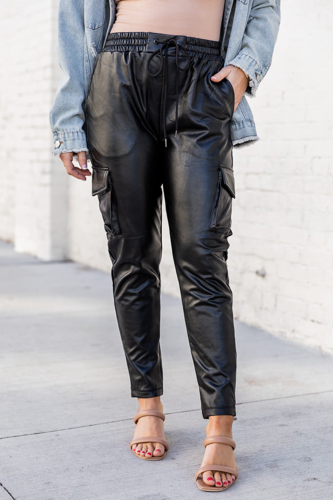 - Faux Leather, Has Some Stretch, Functional PocketsÂ
