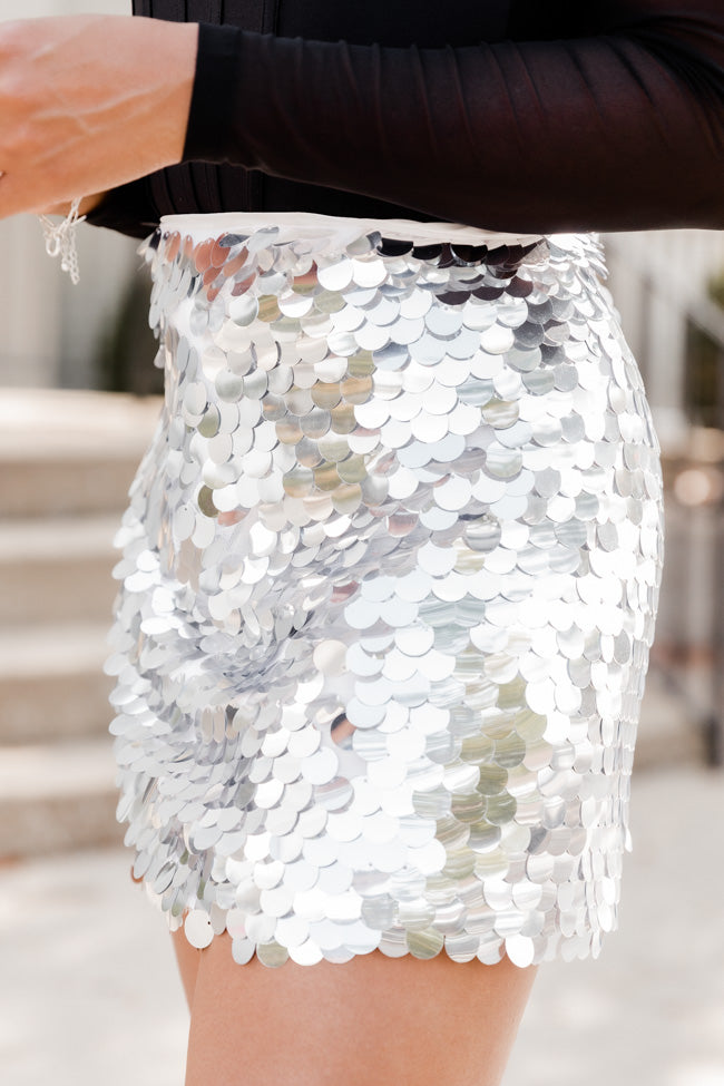 - Silver Sequin Mini Skirt