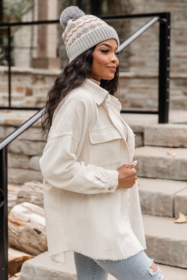 - Functional Buttons And Pockets With A Collar And Distressed HemåÊ