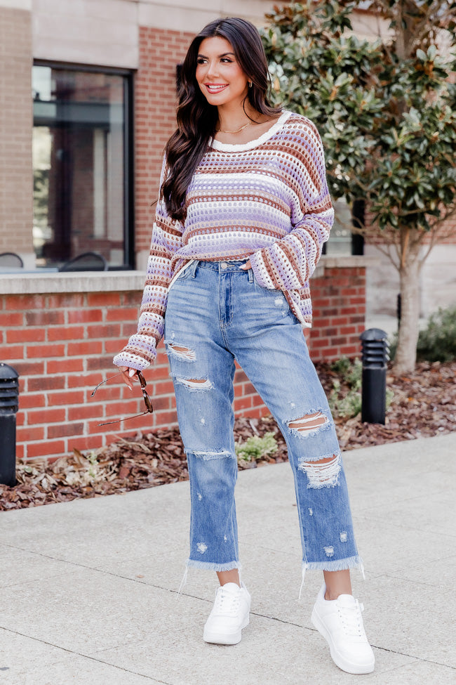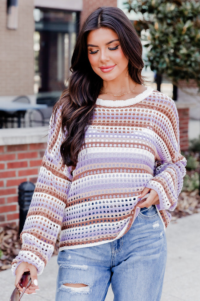 - Purple And Brown Striped Crochet Sweater