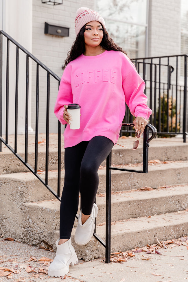 - Mama Embossed Logo Power Pink Graphic Sweatshirt