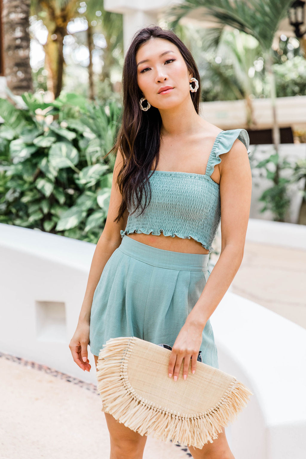- Cropped Length With A Smocked Bust And Ruffled Sleeves