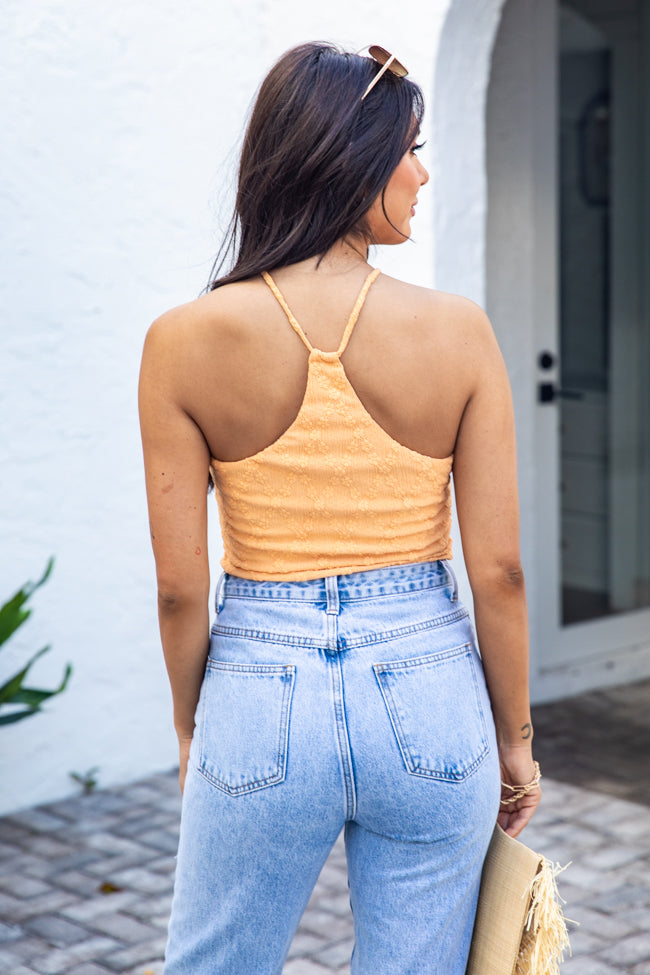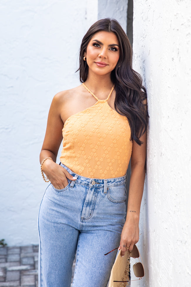 For A Change Apricot Floral Applique Halter Neck Bodysuit