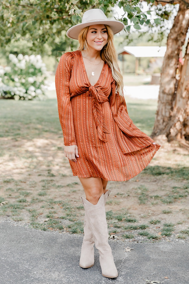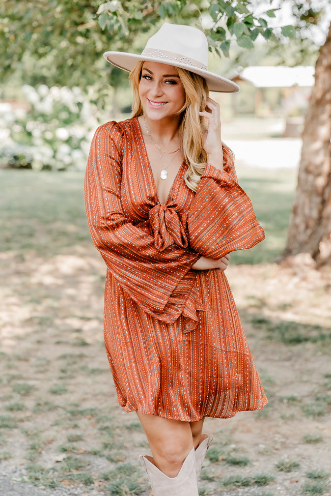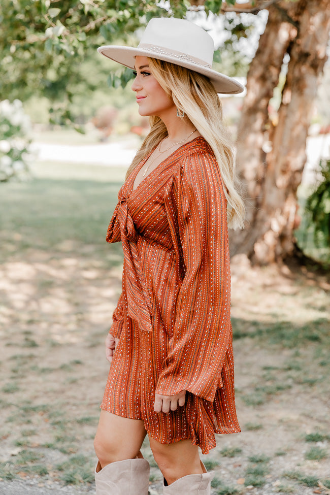 For The First Time Brown Multi Printed Long Sleeve Mini Dress FINAL SALE