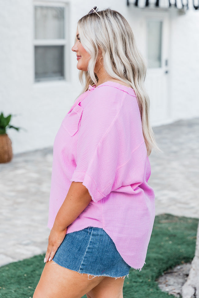 - Scoop Neck, Functional Buttons, Functional Front Pocket, Frayed Detailing On HemsÂ