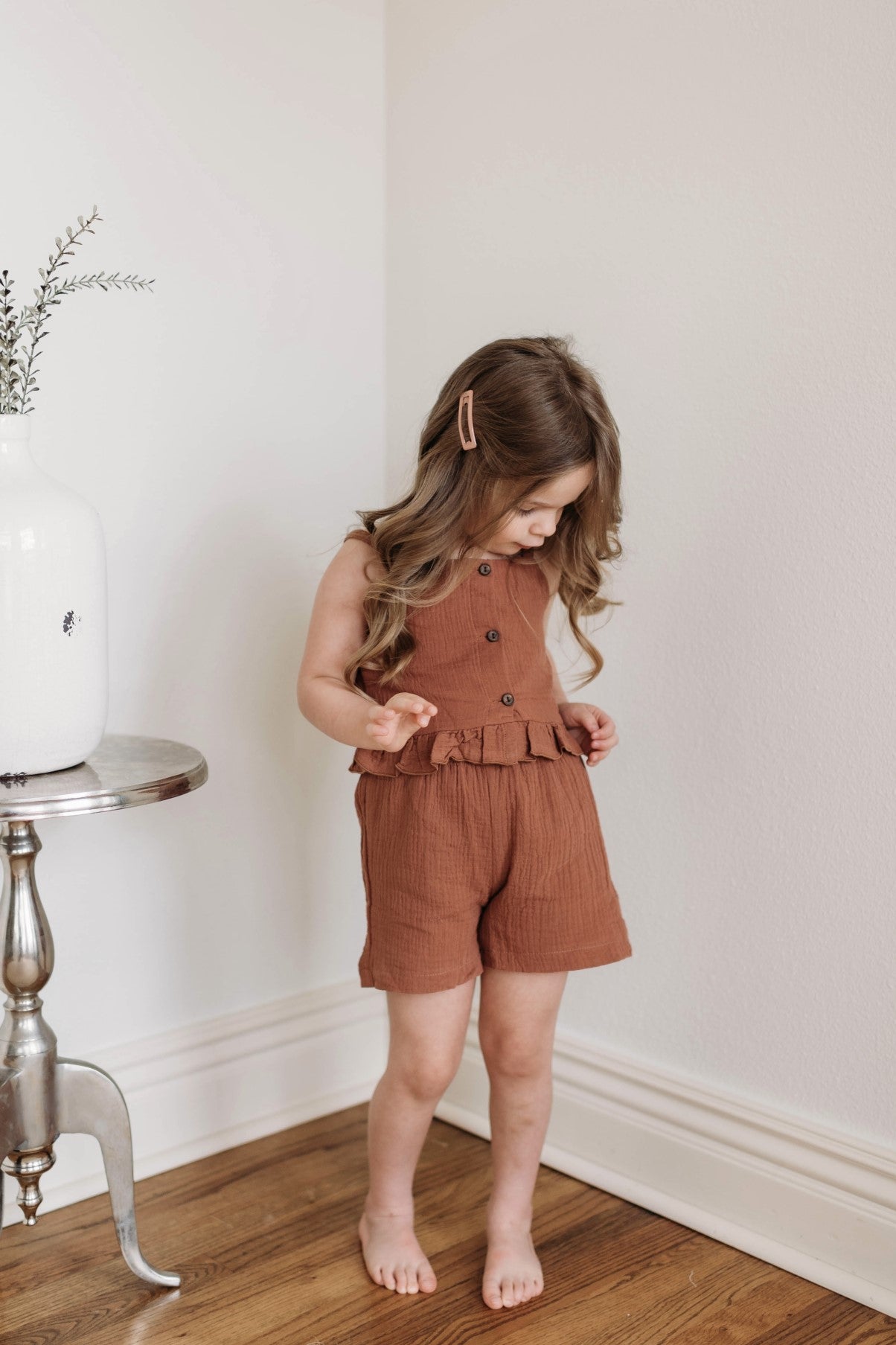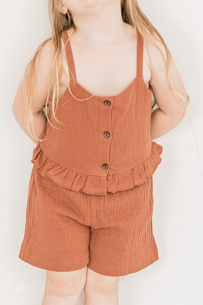 - Ruffle Tank Hem With A Button Detail And Pull On Shorts