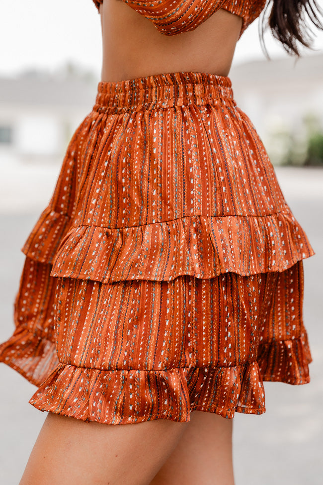 - Brown Multi Printed Ruffle Trim Skirt