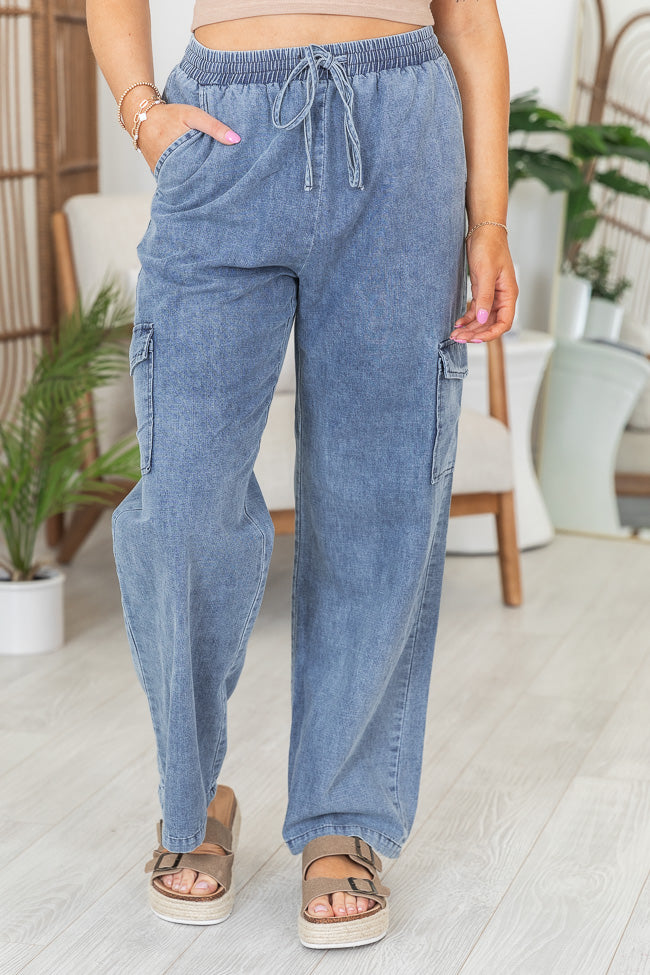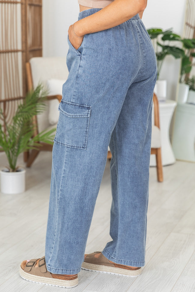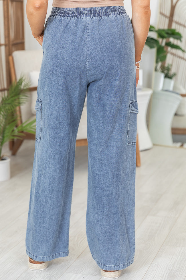 - Medium Wash Chambray Cargo Pants