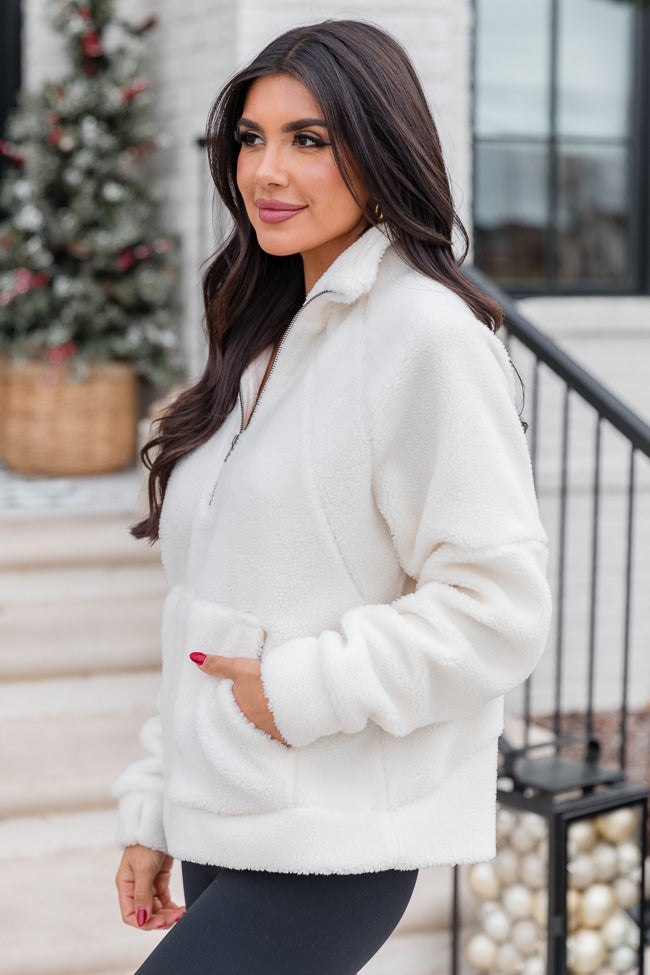 - Cream Sherpa Quarter Zip Pullover