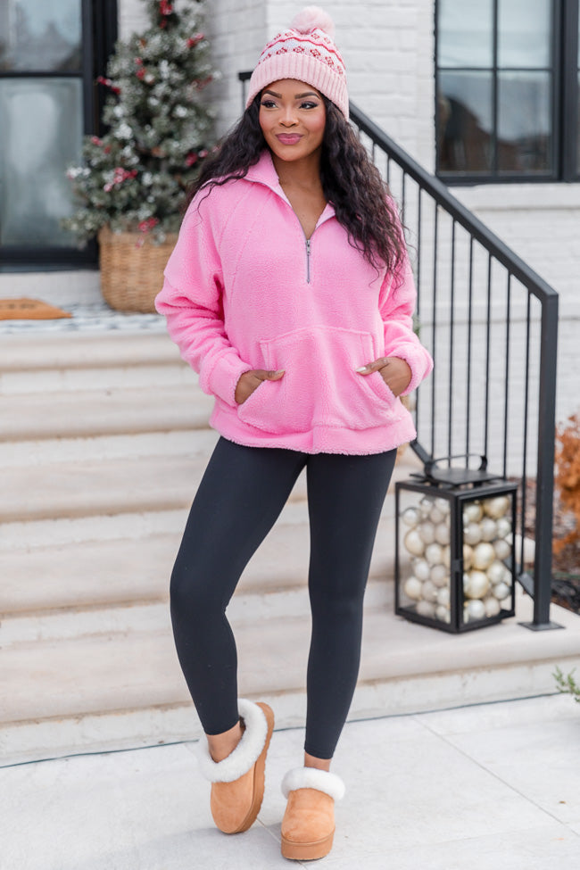 - Collared Quarter Zip Closure With Long Sleeves And Functional Pocket