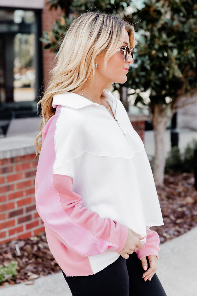 Jump Right In Pink Colorblock Quarter Zip Pullover