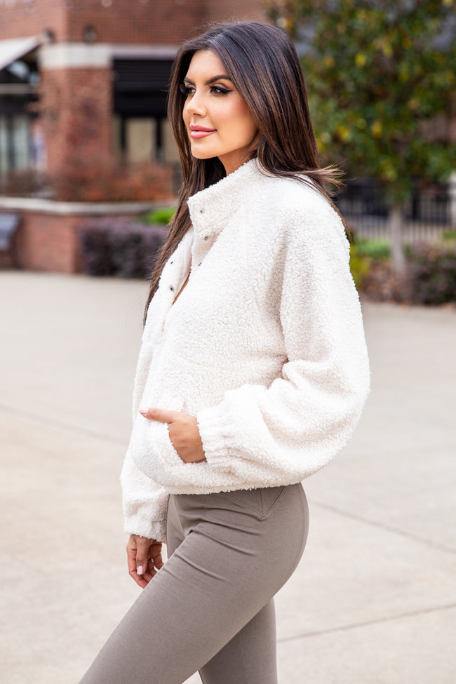 - Soft Sherpa Fabric Has Stretch, Relaxed Fit, Mid Weight