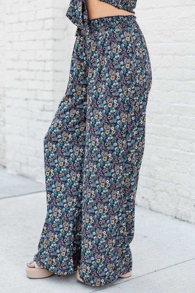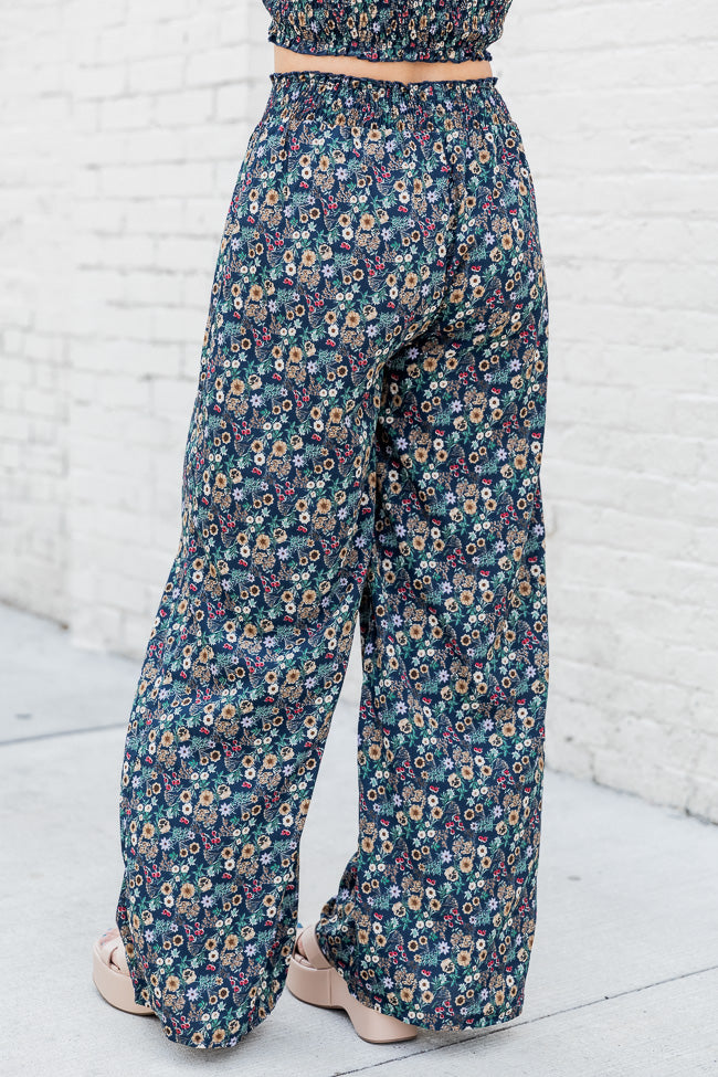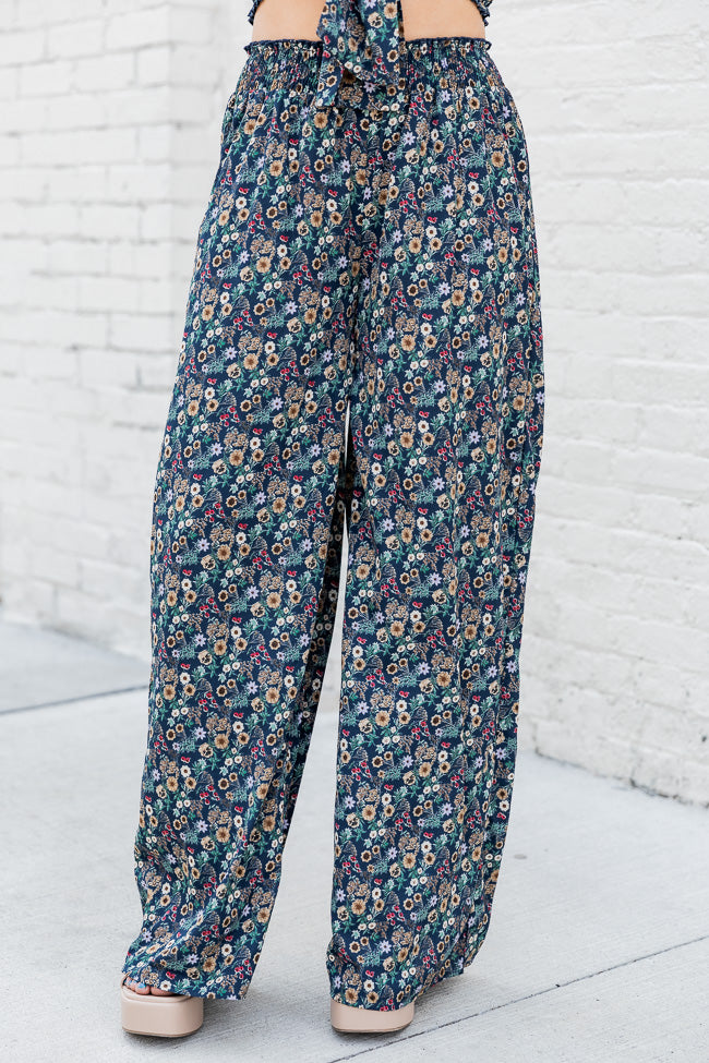 - Navy Multi Color Printed Smocked Waist Pants