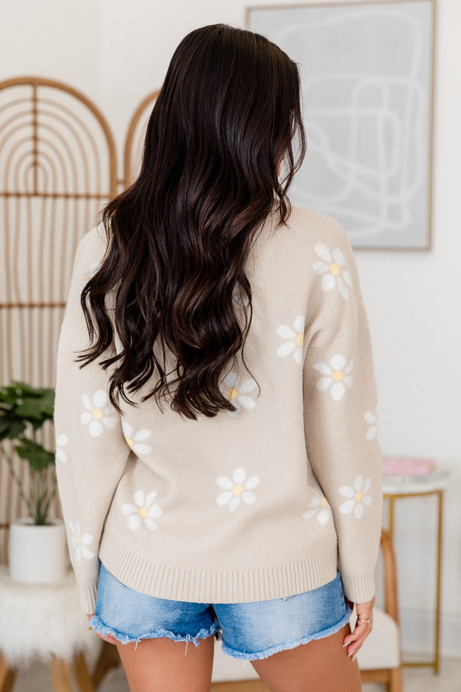 Make It Count Beige Flower Printed Quarter Zip Pullover
