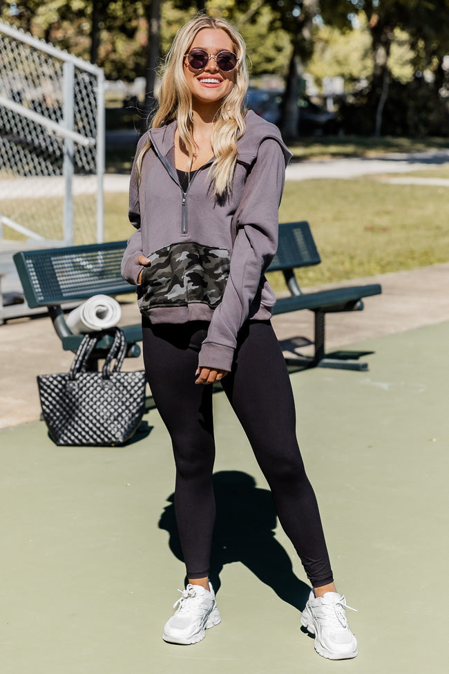 - Ribbed Shoulder Detail, Camo Print Pocket