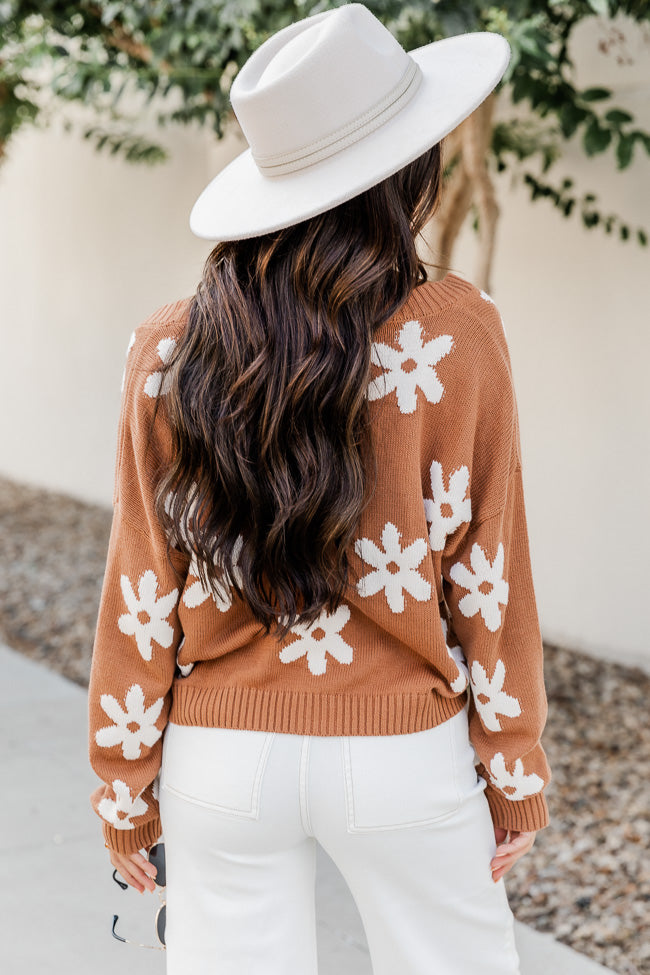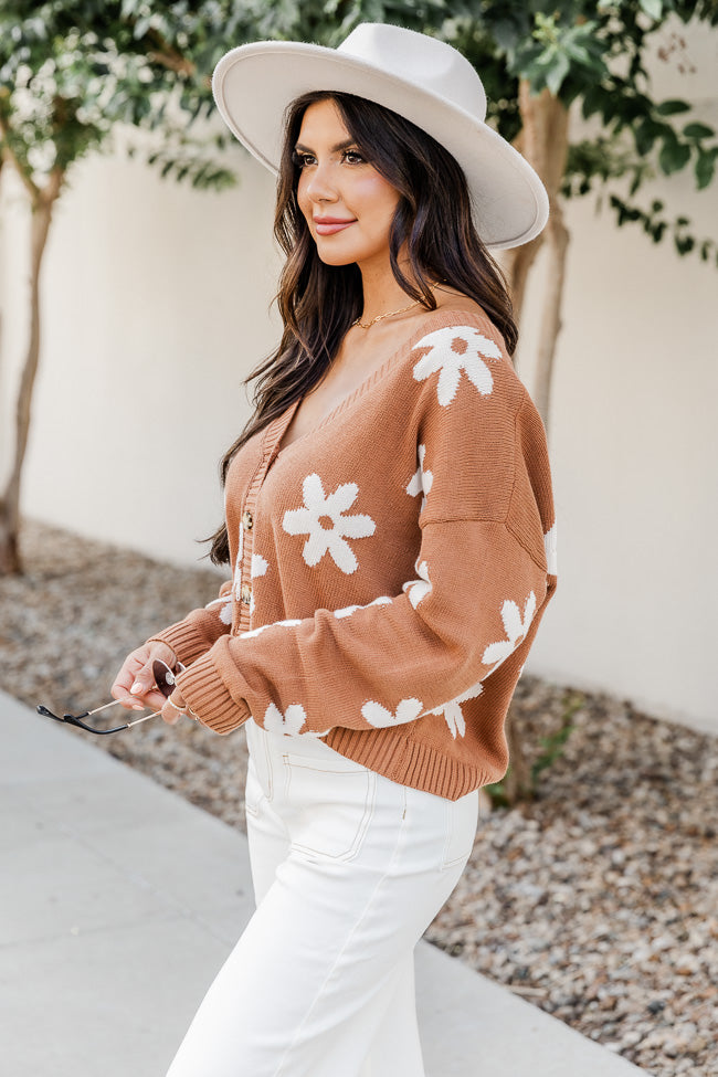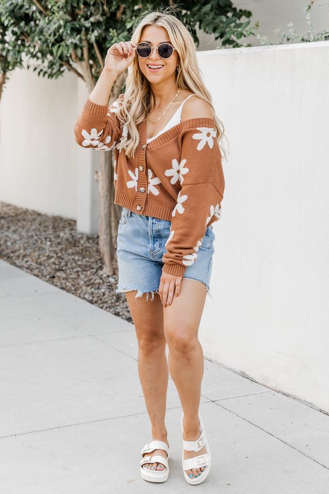 - Brown Cropped Flower Cardigan