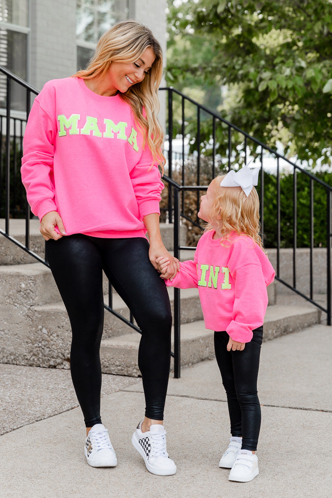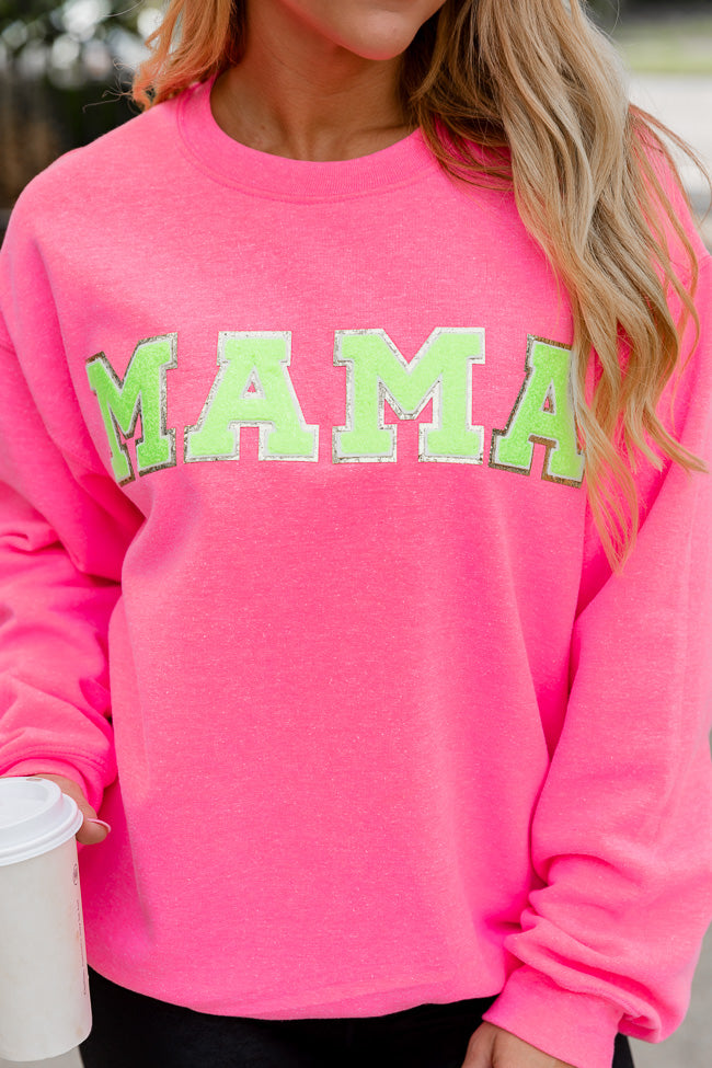 - Mama Neon Chenille Patch Safety Pink Graphic Sweatshirt