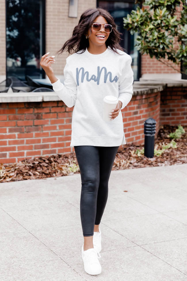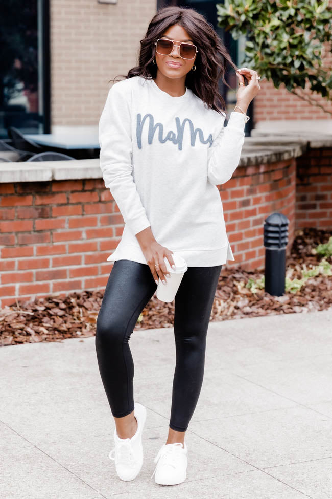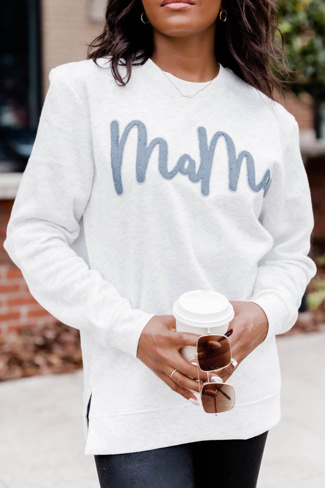 - Mama Script Chenille Patch Ash Graphic Sweatshirt