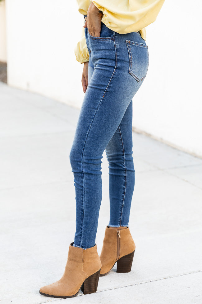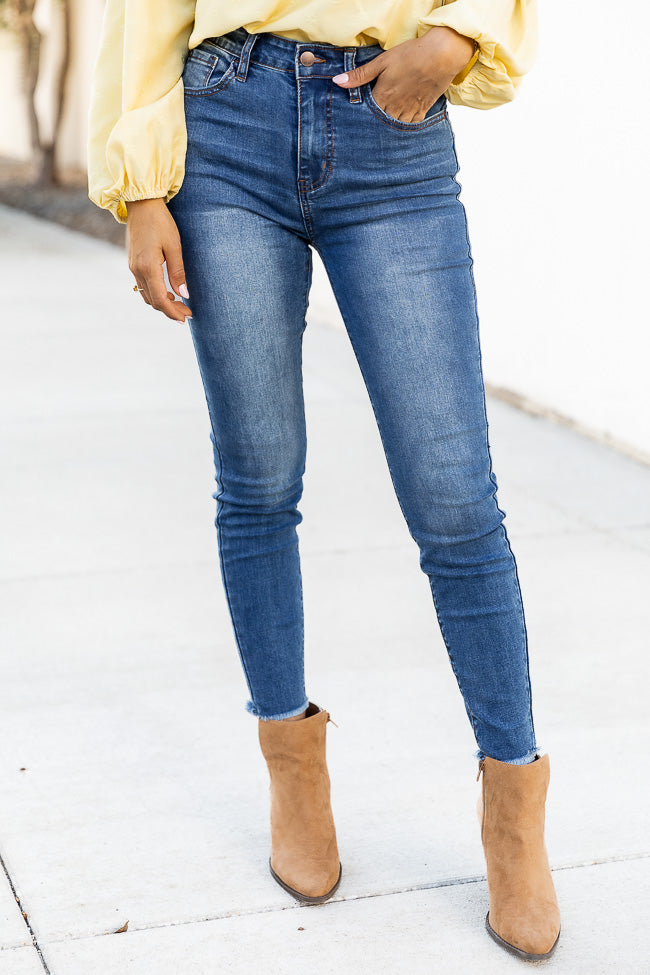 - Frayed Hem With A Skinny Jean Style And High Rise Fit
