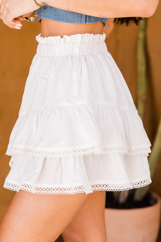 - Cream Smocked Waist Eyelet Trim Skirt