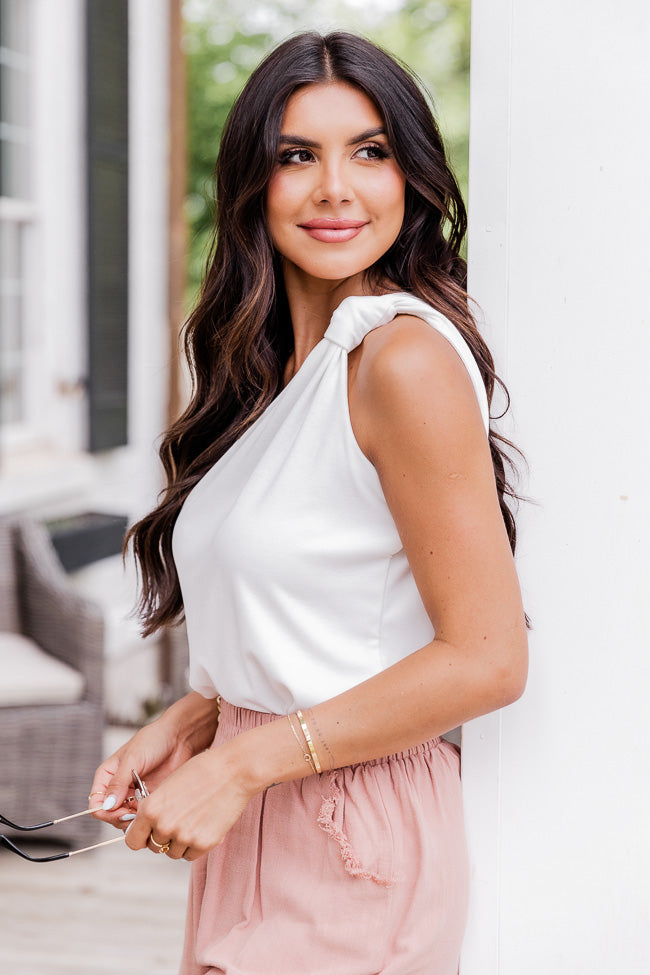 - Ivory Knotted One Shoulder Knit Bodysuit