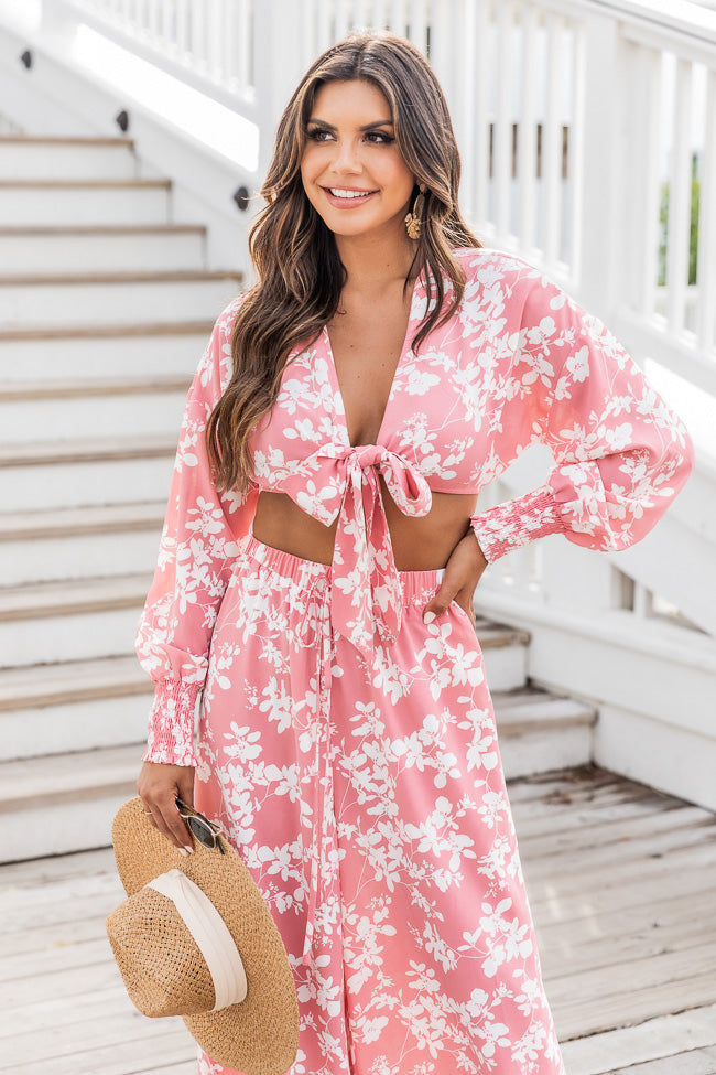 - Cropped Length With A Self Tying Front and Smocked Balloon Sleeves