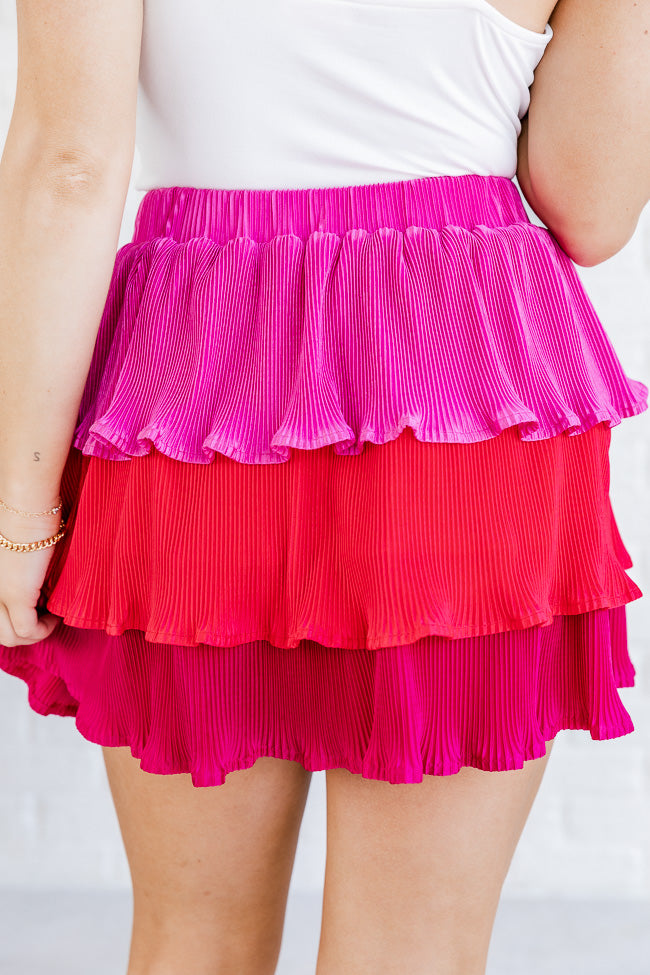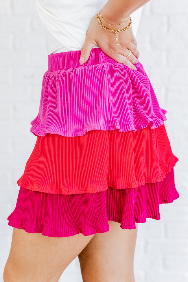 - Pink Colorblock Plisse Tiered Skirt
