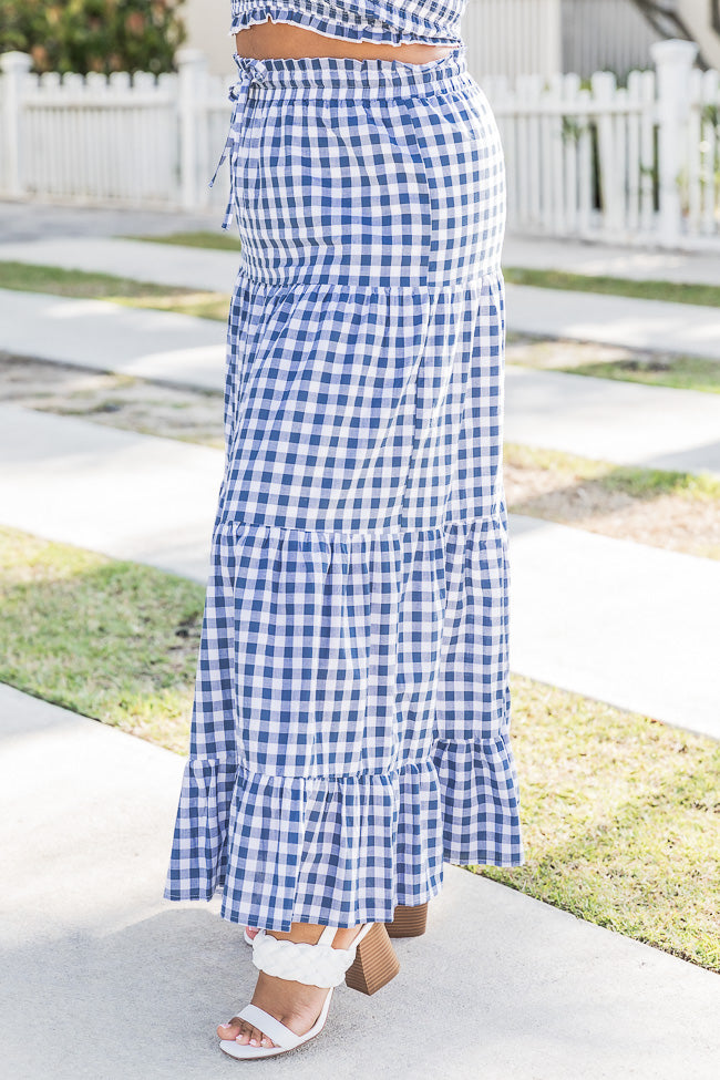 - Navy Gingham Maxi Skirt