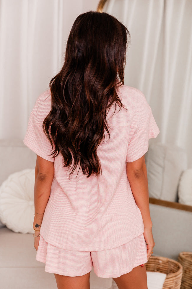 Something To Talk About Pink Waffle Button Up Lounge Top