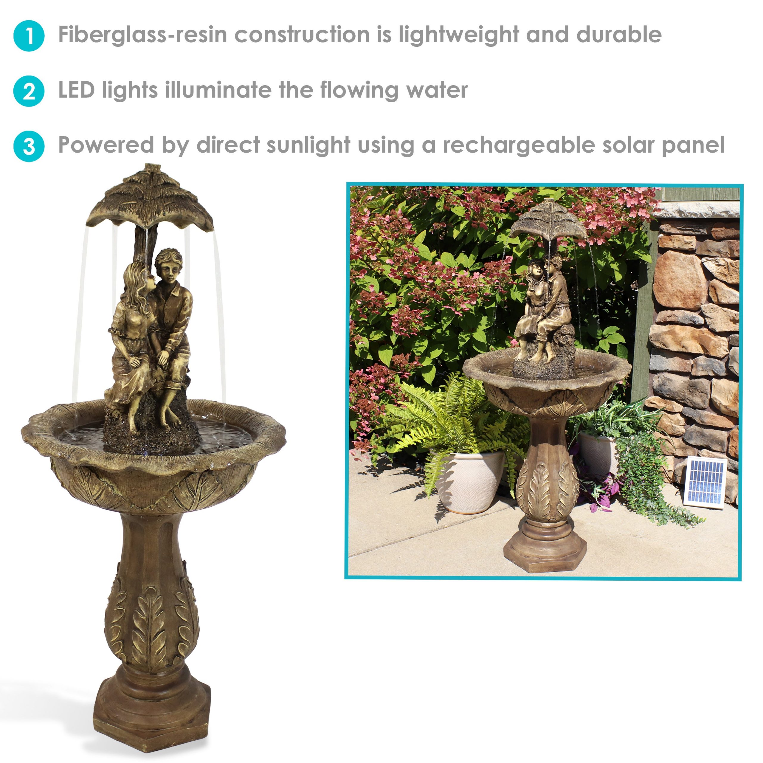 This Sunnydaze Lovers Umbrella Solar With Battery Backup Outdoor Water Fountain Is The Perfect Romantic Piece To Add To Your Garden Or Patio Area. In Addition To Being A Lovely Fountain Display, This Unique Piece Also Doubles As A Birdbath. And As An Added Bonus, You Can Let The Sun Do The Work Since The Fountain Features Convenient Solar Power With A Battery Backup.