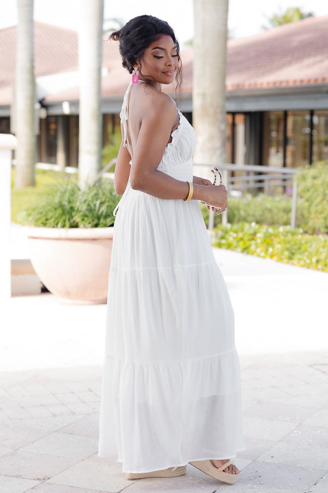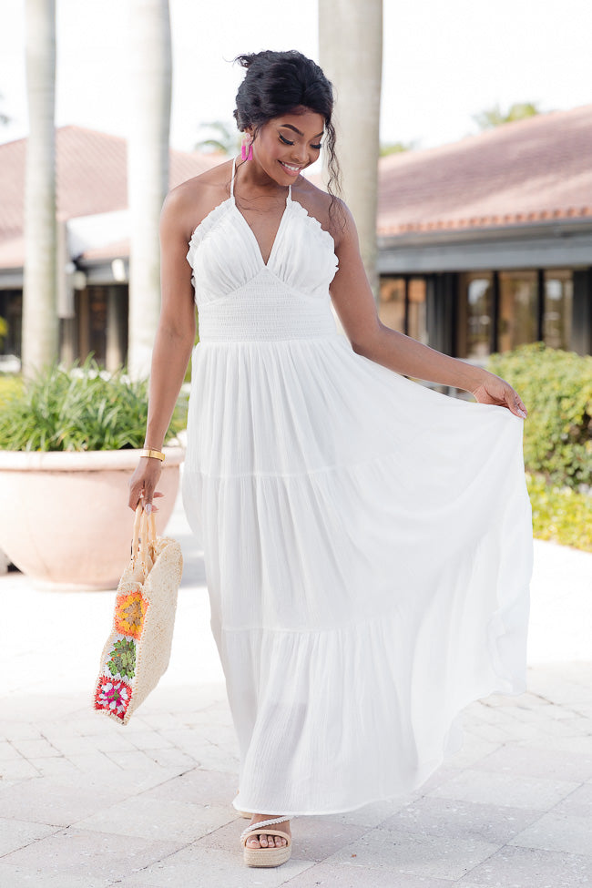 - White Tiered Smocked Top Maxi Dress