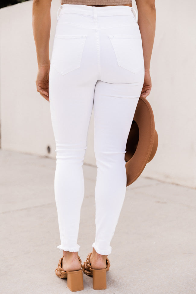 - High Waist Style With Frayed Cuffs And Button Up Style