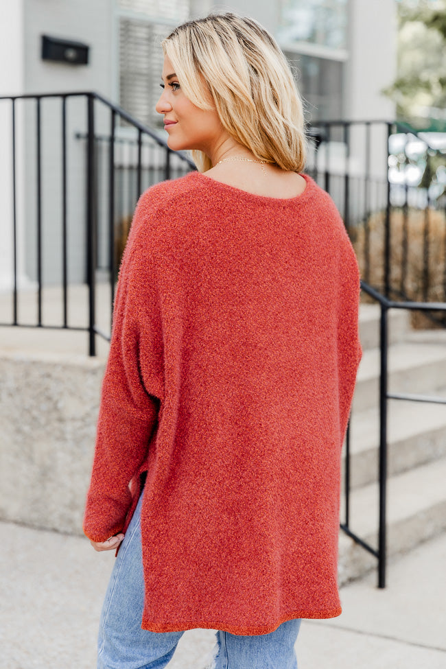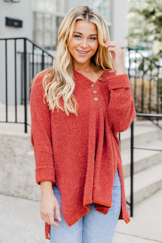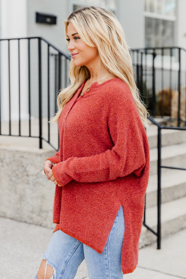 Thinking Of You Rust Fuzzy Henley Blouse FINAL SALE