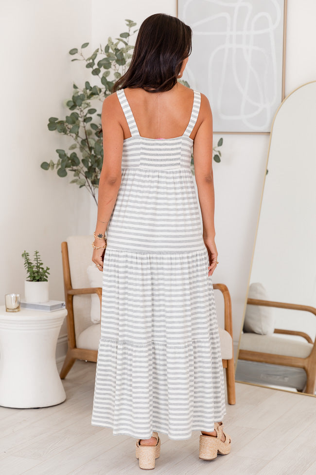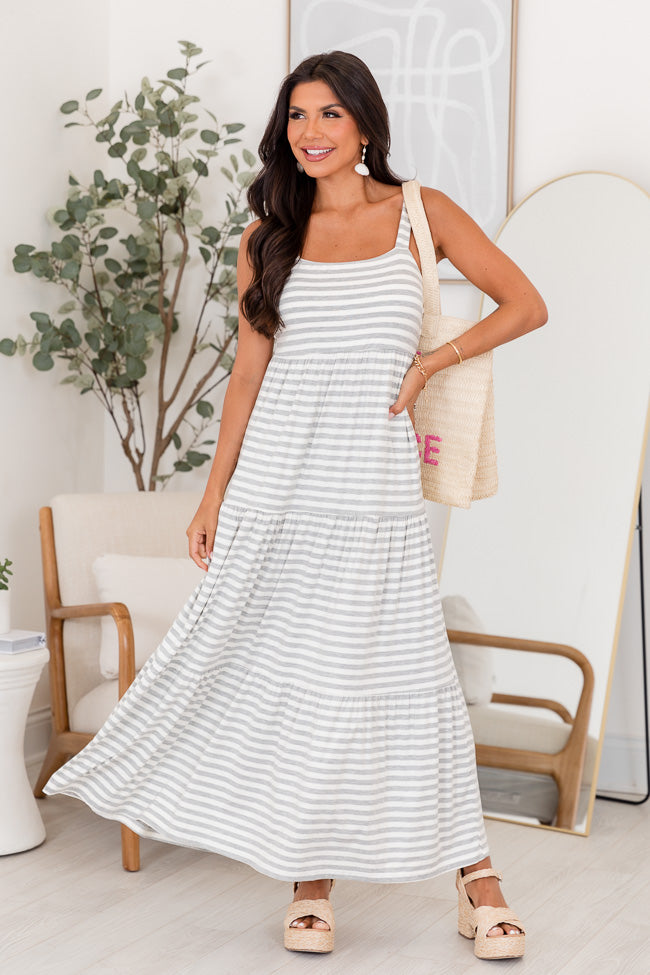 - Grey Stripe Knit Maxi Dress With Padded TopÂ