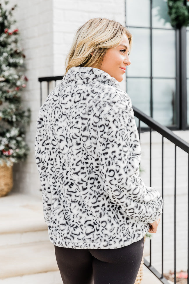 - Black And Ivory Leopard Print Quarter Zip Pullover