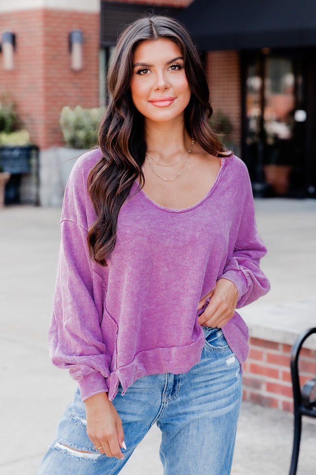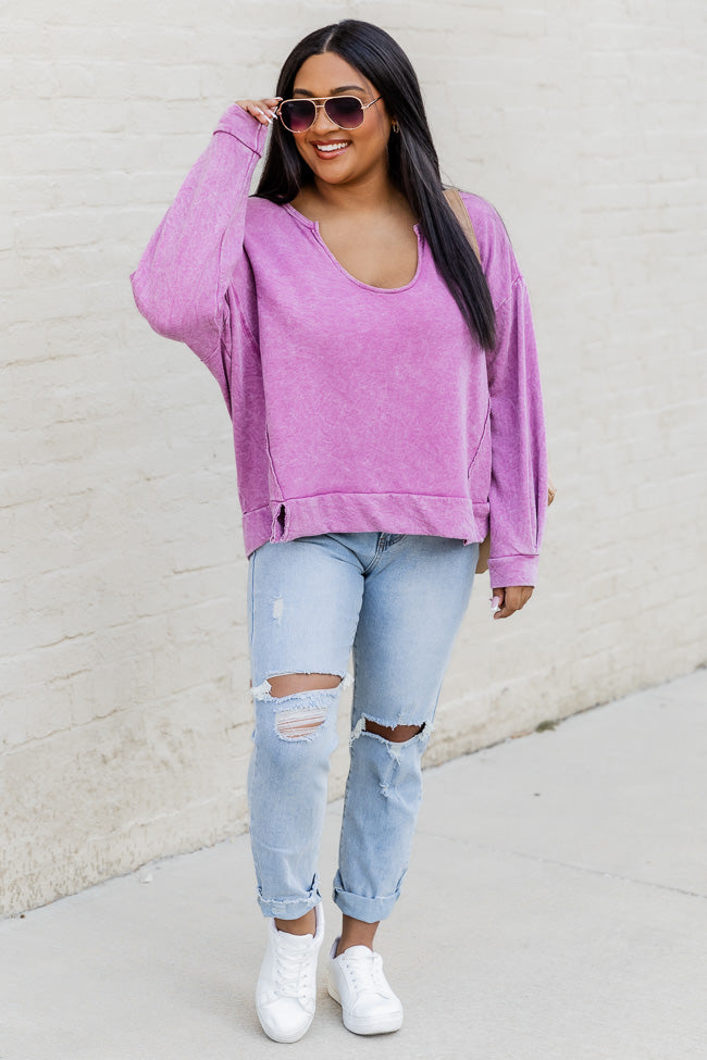 • Notched V-neckline With Long Sleeves And Ribbed Hem Detailing