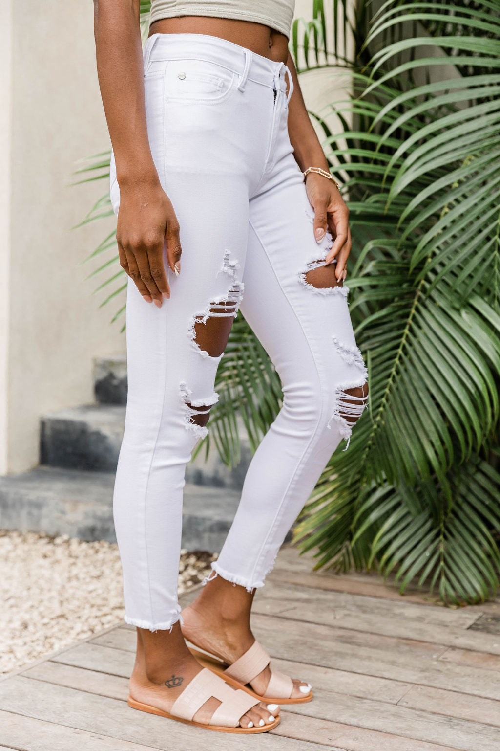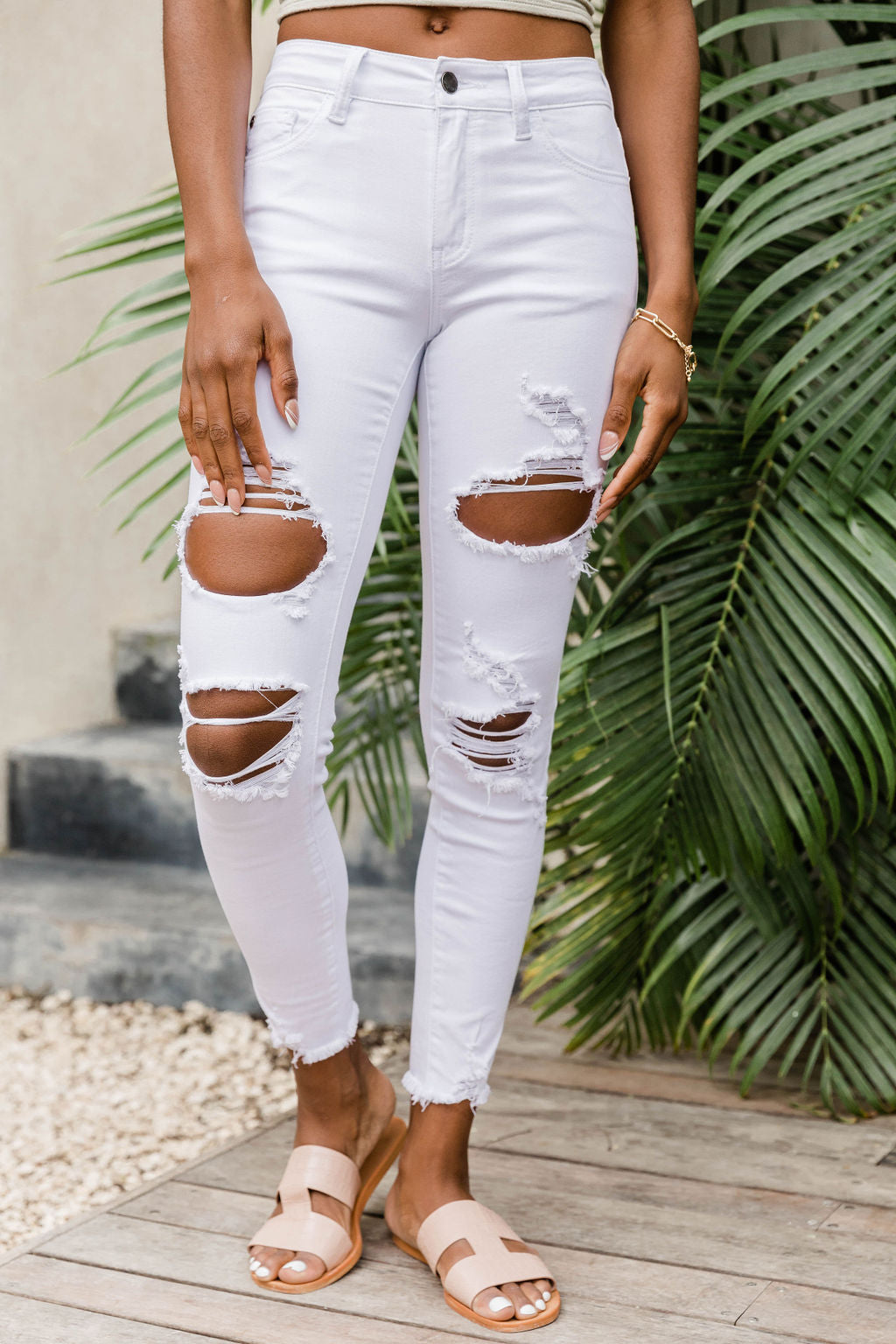- Raw Hem With distressing, Mid Rise, And Skinny Jean StyleÂ