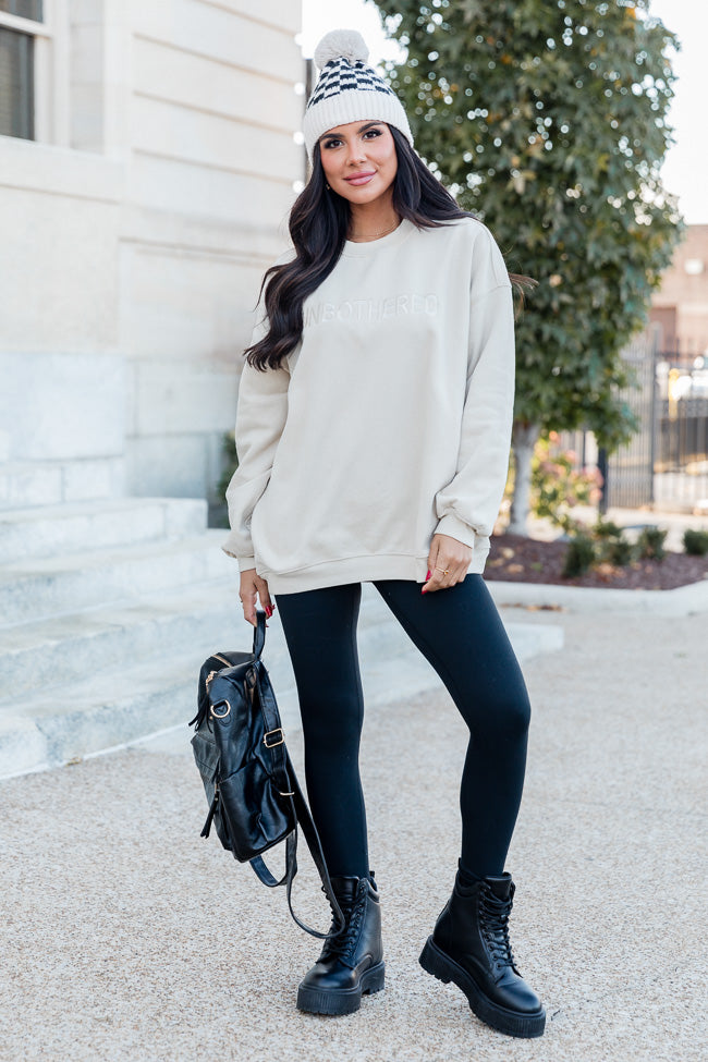 Unbothered Embroidered Ivory Oversized Sweatshirt