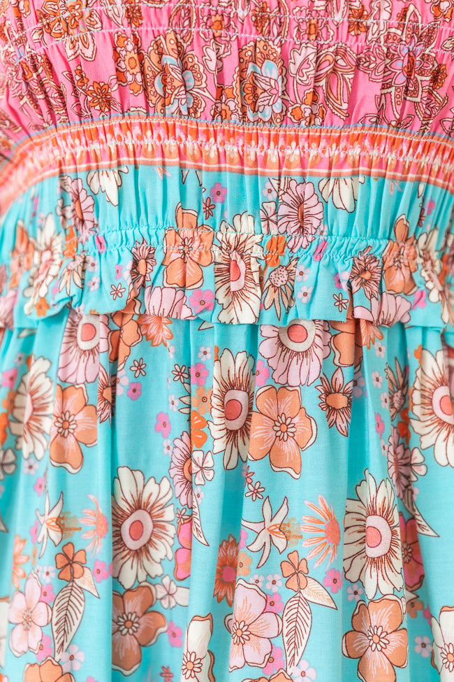 - Adjustable Straps, Elastic Waistband, Elastic NecklineÂ